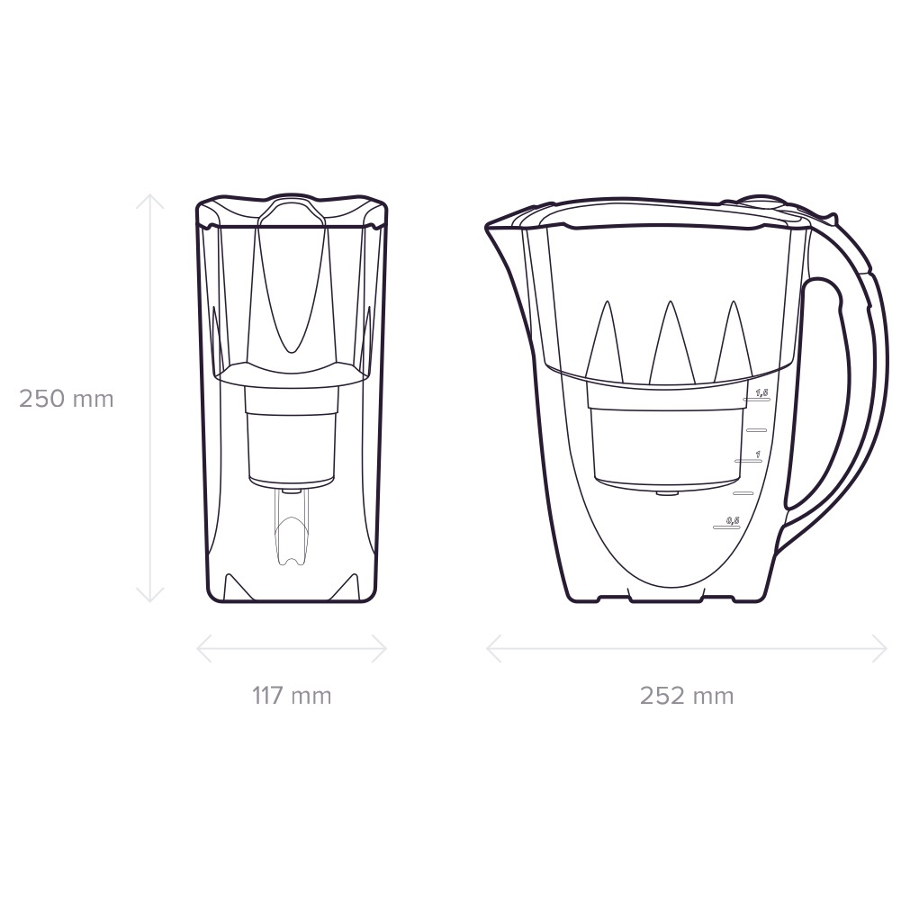 Compact and ergonomic water jug that fits on refrigerator door and keeps water fresh for a long time. Using Aquaphor filter jugs saves up to 2400 single use plastic 0.5l bottles per year. Reduces limescale and extends the life of household appliances.