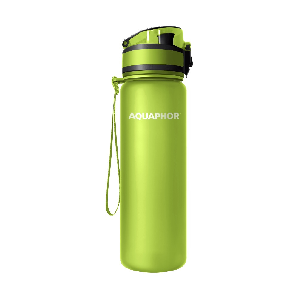 Filtering water bottle with matte finish quickly and effectively purifies tap water to drinking level. Wide strap additionally secures bottle, making it comfortable to use even while jogging. Protective cap prevents water leakage. Made of lightweight and impact resistant BPA free Tritan. Bottle capacity is 0.5 liters.
