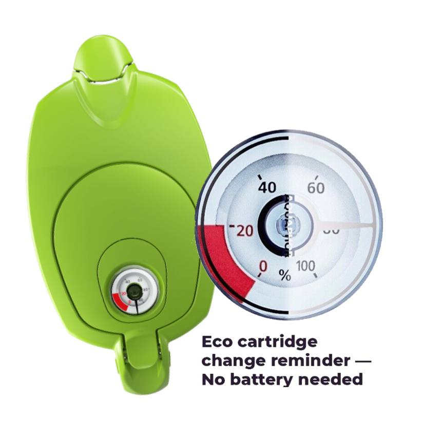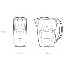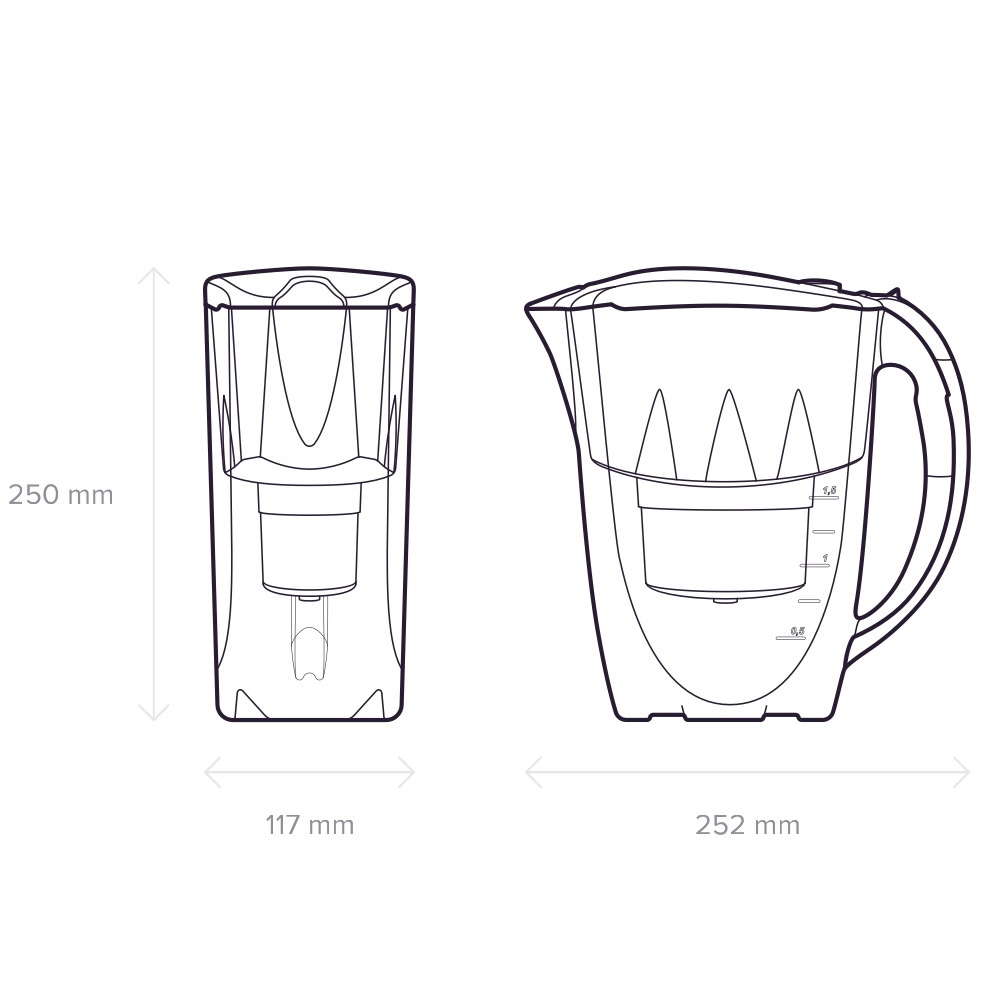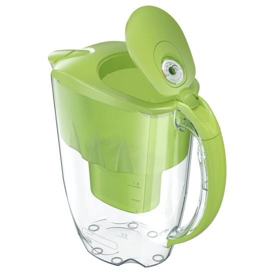 Compact, space saving filter jug that is convenient to use and store in refrigerator door. A mechanical life counter reminds to replace replacement module.