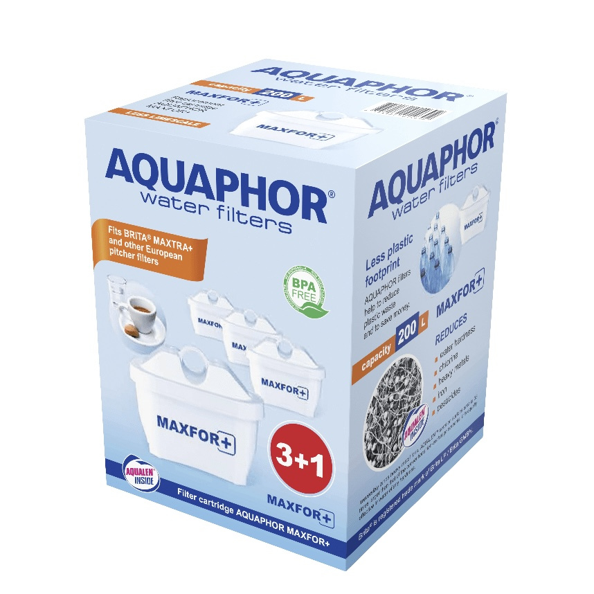 Replacement cartridge provides universal protection against a range of impurities commonly found in tap water. Improves water taste and odor while reducing the speed of scale formation in hard water. Effectively reduces water hardness, chlorine, heavy metals, iron, pesticides, organic compounds, and other contaminants. Cartridge compatible with all Aquaphor Maxfor+ filter jugs.