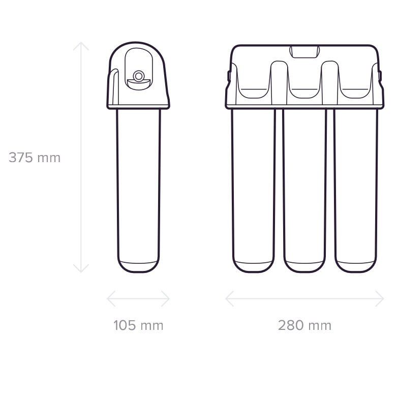 Pro1 replacement cartridge combines mechanical filtration and highly efficient deep cleaning unit, which allows it to cope with increased concentrations of colloidal and dissolved iron, also purifying rusty, cloudy or visually dirty water from chemical impurities, significantly increasing the service life of the system. Replacement necessary every 6 months.