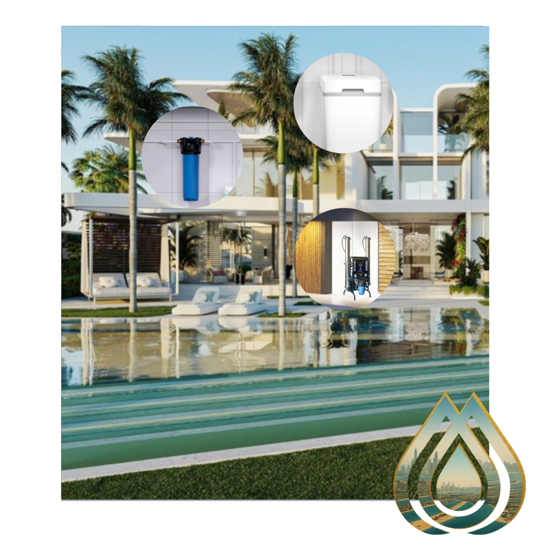 Emirates package is suitable for private home or villa and will be an excellent solution for families of 2-5 members. Package includes professional RO system, cabinet water softener and pre-filtration filters. It's also a cost-efficient solution – minimized maintenance and reduced energy consumption due to softened water.