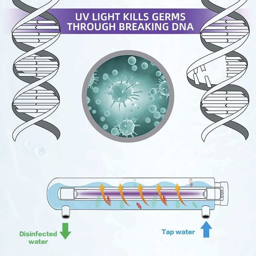 Most reliable, economical solution and chemical-free way to safeguard drinking water. UV sterilizer improves quality of drinking water, eliminates harmful substances and viruses, resource designed for 6,000 - 8,000 hours of use.