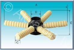 Distributors vary in shape, size, diameter and other characteristics that are tailored to the specific requirements of the water treatment system. However, in general, the switchgear is a compact piece made from durable, impact-resistant plastic. In the walls of the distributor housing there are threaded bore holes, as well as a hole through which the device is connected to the water-lifting tube. There are calibrated slots and connecting threads in the housing or the beams (extending to all sides of the side plastic tubes).
