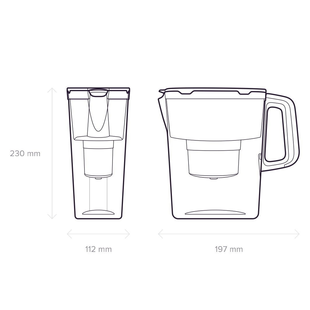 Самый компактный фильтр-кувшин со съемной ручкой, легко размещяется даже на узкой полке холодильника.