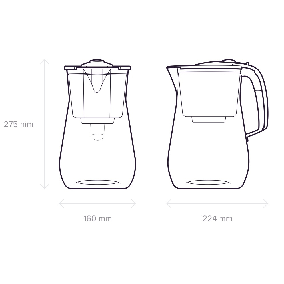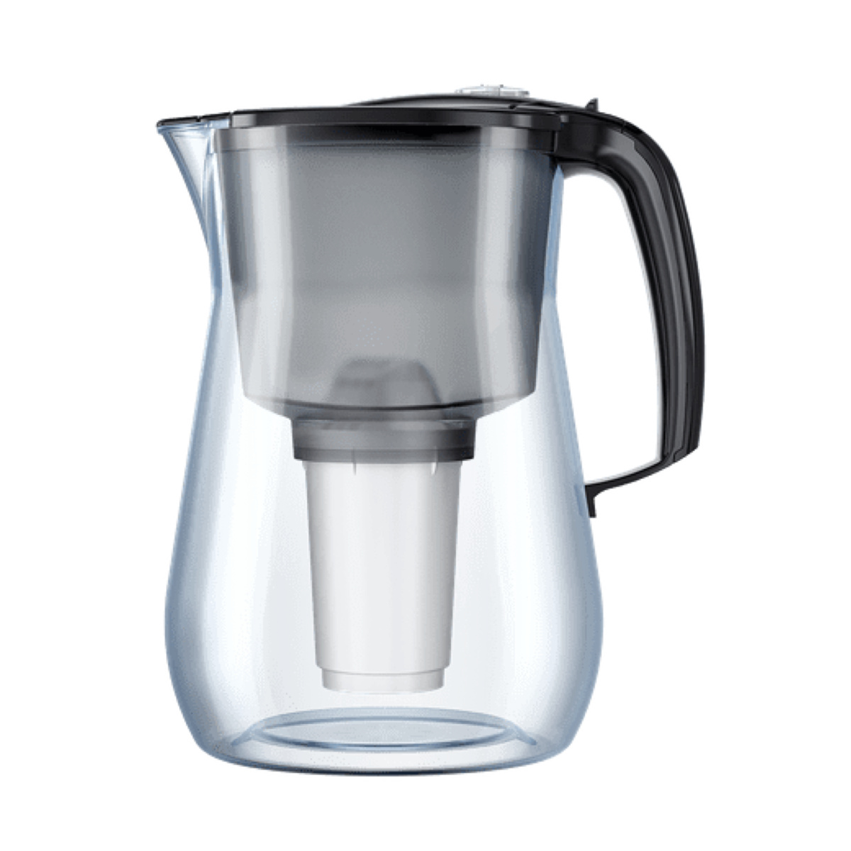 Удобный фильтр-кувшин из небьющегося пластика, этот современный материал выглядит как стекло, при этом он легкий и невероятно прочный. При падении кувшин не разобьется и не треснет. Кувшин надолго сохраняет глянец даже при активном использовании и падениях. Благодаря круглому дну кувшин устойчивее обычных фильтров-кувшинов. Отследить время замены сменного модуля поможет механический счетчик на крышке, который легко обнулить при замене фильтра.